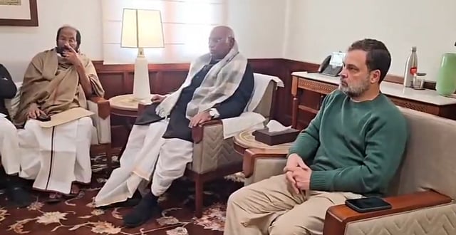 நாடாளுமன்ற வளாகத்தில் உள்ள காங்கிரஸ் அலுவலகத்தில் இந்தியா கூட்டணிக் கட்சித் தலைவர்களுடன் மல்லிகார்ஜுன கார்கே மற்றும் ராகுல் காந்தி தீவிர ஆலோசனையில் ஈடுபட்டுள்ளனர்.