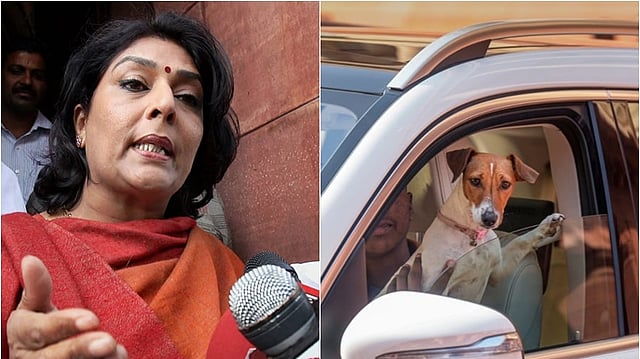 நாடாளுமன்றத்துக்கு வரும் வழியில் நாயை மீட்டதாகவும், தனது ஓட்டுநா் மூலம் கால்நடை மருத்துவமனைக்கு கொண்டு செல்வதற்காக காரில் கொண்டுவந்தாகவும் ரேணுகா செளதரி தெரிவித்தாா். தெருநாய்கள் பிரச்னை பேசுபொருளாக இருந்ததால், அவரது செய்கை கவனம் பெற்றது.