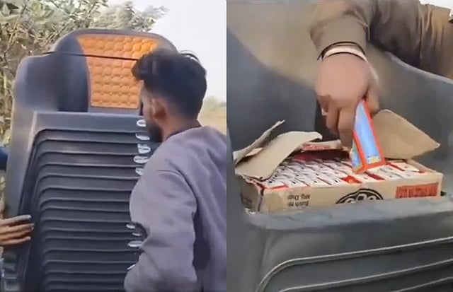 இதன் பிறகு நாற்காலிகளை ஒன்றொன்றாக எடுத்துப் பார்க்கையில், அதனுள் ஏராளமான மதுபாட்டில்கள் கடத்திச் சென்றது தெரியவந்துள்ளது. இந்த விடியோ இணையத்தில் பலரால் பகிரப்பட்டு வருகிறது.