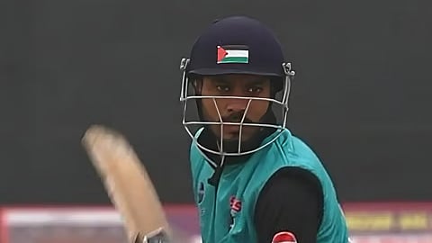 ஜம்மு - காஷ்மீரில், கடந்த புதன்கிழமை (டிச. 31) நடைபெற்ற தனியார் கிரிக்கெட் போட்டிகளில், ஜேகே 11 எனும் உள்ளூர் கிரிக்கெட் அணியைச் சேர்ந்த ஃபுர்கான் உல் ஹக் எனும் வீரர் பாலஸ்தீன கொடி ஒட்டப்பட்ட தலைக்கவசத்தை அணிந்து விளையாடியுள்ளார்.