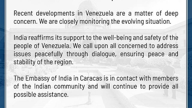 வெனிசுவேலா மக்களின் நல்வாழ்வு மற்றும் பாதுகாப்புக்கு இந்தியா தனது ஆதரவை மீண்டும் உறுதிப்படுத்துகிறது.
