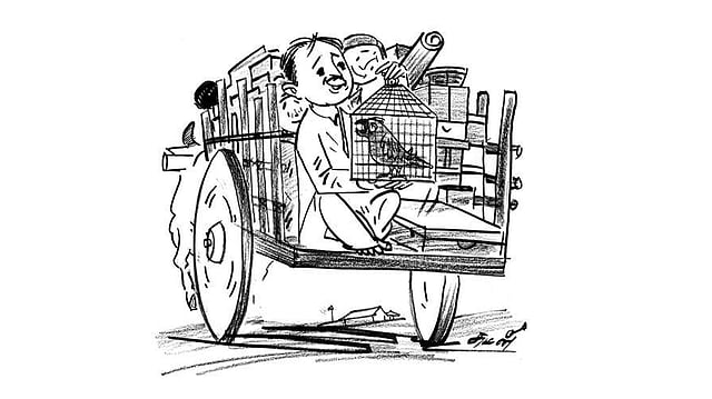 ஒரு குடும்பத்தார் வீடு மாறி, புதிய முகவரிக்கு போய்க் கொண்டிருந்தனர். அவர்களுடைய சாமான் செட்டுகள் ஒரு மாட்டு வண்டியில் ஏற்றப்பட்டிருந்தன. அதோடு அவர்களும் ஏறிக்கொண்டனர்.
