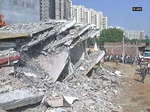 உத்தரபிரதேச மாநிலத்தின் கவுதம புத்தா நகர் மாவட்டத்தின் தொழில் நகரமான நொய்டா அருகில் உள்ள ஷா பெரி என்னும் கிராமத்தில் புதிதாக 6 மாடி கட்டிடம் ஒன்று கட்டும் பணி கடந்த சில வாரங்களாக நடந்து வந்தது. நேற்று முன்தினம் செவ்வாய்கிழமை இரவு இந்த கட்டிடம் திடீரென பயங்கர சத்தத்துடன் இடிந்து அருகில் இருந்த 4 மாடி கட்டிடத்தின் மீது விழுந்தது. இதனால் 4 மாடி கட்டிடமும் முற்றிலுமாக இடிந்து தரைமட்டமானது.