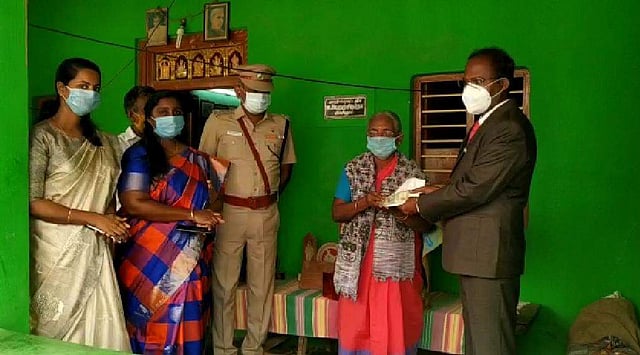 விழுப்புரம் அடுத்த கோலியனுர் பகுதியில் வசிக்கும் சுதந்திர போராட்ட வீரர் (தியாகி) குடும்பம் சார்பில், விழுப்புரம் மாவட்ட ஆட்சியர் ஆ.அண்ணாதுரை அவர்களிடம் கரோனா நிவாரண நிதியாக ரூ. 12,500 தொகையை, தியாகியின் மனைவி சுலோச்சனா வழங்கினார்.