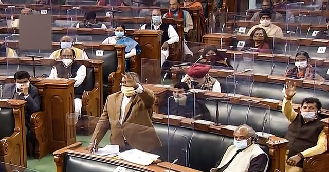 மக்களவை கூடிய சிறிது நேரத்தில், மத்திய அரசு கொண்டு வந்த மூன்று வேளாண் சட்டங்களையும் திரும்பப் பெறக் கோரி எதிர்க்கட்சி உறுப்பினர்கள் தொடர்ந்து முழக்கமிட்டு அமளியில் ஈடுபட்டனர்.