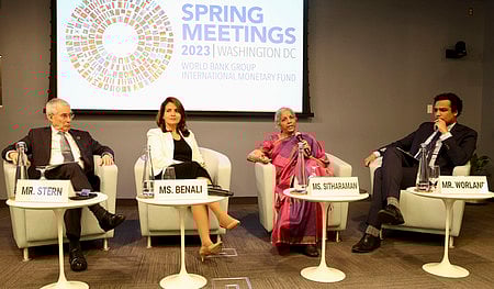 அமெரிக்காவில் அரசுமுறை பயணம் மேற்கொண்டுள்ள நிா்மலா சீதாராமன், சா்வதேச நிதியம் (ஐஎம்எஃப்), உலக வங்கி ஆகியவற்றின் வசந்த கால கூட்டங்கள் உள்பட முக்கியத்துவம் வாய்ந்த பல்வேறு நிகழ்ச்சிகளில் பங்கேற்று வருகிறாா்.