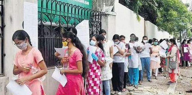 இது குறித்து பெற்றோர் கூறுகையில், நாங்கள் 12 மணிக்கு தேர்வு மையத்தில் எங்கள் பெண்ணை இறக்கிவிட்டோம். சிறிது நேரத்தில் துப்பட்டாவைக் கொண்டுவருமாறு கூறினார்கள். நாங்களும் கொண்டு போய் கொடுத்தோம். தேர்வு முடிந்து, எங்களது மகள் வெளியே வரும்போதுதான் என்ன நடந்தது என்பதே எங்களுக்குத் தெரிந்தது.