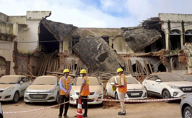 மத்தியப் பிரதேசத்தில் போபால் நகரில் பலத்த மழை காரணமாக வரலாற்றுப் புகழ்மிக்க மோத்தி மஹாலின் ஒரு பகுதி இடிந்துவிழுந்தது. இடிபாடுகளை அகற்றத் தயாராகிறார்கள் மீட்புப் படையினர்.