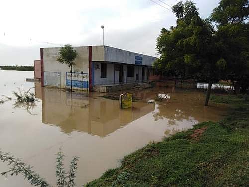 திருச்சுழி வட்டம் கம்பாளி கிராமத்தில் உள்ள அரசு உயர்நிலைப் பள்ளிக் கட்டடத்தைச் சூழ்ந்துள்ள மழைநீரால் கட்டடத்தின் உறுதித்தண்மை குறைந்து சேதமடையும் அபாயம் உள்ளது.