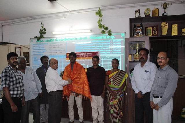 சில்வார்பட்டி அரசு மாதிரி மேல்நிலைப் பள்ளியில் நடைபெற்ற விழாவிற்கு பள்ளி தலைமையாசிரியர் மோகன் தலைமை வகித்தார். பஞ்சாப் நேஷனல் வங்கியின் மதுரை மண்டலத்தலைவர் எம்.பலசுப்பிரமணியன், மதுரை வட்ட மேலாளர் கே.ஆர்.ஜெகதீஸன் ஆகியோர் கலந்து கொண்டு மாணவன் என்.ஜீவித்குமாரை பாராட்டி சால்வை அணிவித்து டேப் வழங்கினார்கள். மேலும் பள்ளி தலைமையாசிரியர் மோகனுக்கு சால்வை அணிவித்து பாராட்டினார்கள்.