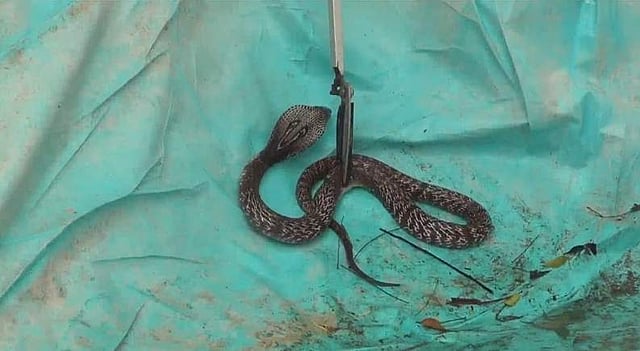 இதையடுத்து சந்தேகமடைந்த விவசாயி பைப்பை தட்டி பார்த்த போது பைப்பில் இருந்து இரண்டு பாம்புகள் சீறிக்கொண்டு வெளியே வந்தன. பின்னர் பாம்புகளை துரத்த மரக்கம்பை எடுத்து வரச் சென்று திரும்பிய போது இரண்டு பாம்புகளும் ஒன்றோடொன்று பிண்ணி பிணைந்து கொண்டு விளையாடிக் கொண்டிருந்து. இதையடுத்து சாரை மற்றும் நல்ல பாம்பு இரண்டும் பிண்ணி பிணைந்து கொண்டு விளையாடினால் அதை தடுக்க முயற்சிக்கக் கூடாது என்ற ஐதீகம் இருப்பதை அறிந்து ஒன்று செய்யாமல் விட்டுவிட்டார்.