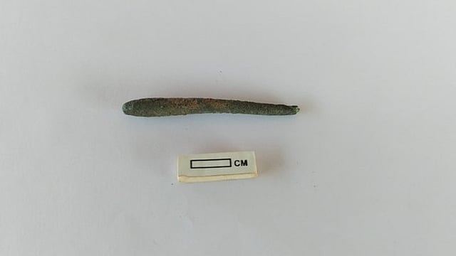கண்களுக்கு மைத்தீட்டுவதற்கு உபயோகப்படுத்தப்படும் செம்பினால் ஆன அஞ்சனக்கோல் 127 செ.மீ ஆழத்தில் கண்டெடுக்கப்பட்டுள்ளது.