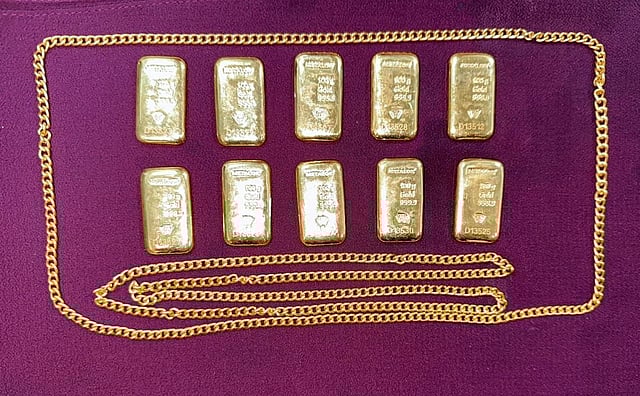 அப்போது, பயணி ஒருவரிடம் விசாரணை மேற்கொண்ட போது அவர் முன்னுக்கு பின் முரணான பதிலளித்ததால் அதிகாரிகள் அந்த பயணியைத் தனியாக அழைத்துச் சென்று அவரது உடமைகளை சோதனை செய்ததில் அவர் கொண்டு வந்த பையில் தங்க கட்டிகள் மற்றும் தங்க செயின் இருந்தது தெரியவந்தது. இதையடுத்து அவரிடம் இருந்த 1 கிலோ 220 கிராம் எடை கொண்ட 10 தங்க கட்டிகள் மற்றும் செயினை அதிகாரிகள் பறிமுதல் செய்தனர். இதன் மதிப்பு ரூ.90 லட்சத்து 28 ஆயிரம் எனக் கூறப்படுகிறது. கடத்தலில் ஈடுபட்ட நபரிடம் அதிகாரிகள் தொடா்ந்து விசாரணை நடத்தி வருகின்றனா்.