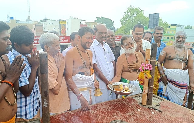 அவிநாசி: அவிநாசிலிங்கேஸ்வரர் கோயில் சித்திரைத்தேர்த் திருவிழா மே 1 ஆம் தேதி கொடியேற்றத்துடன் தொடங்குவதை முன்னிட்டு திருத்தேர் ஆயக்கால் பூஜை வெள்ளிக்கிழமை காலை நடைபெற்றது.