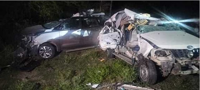 இந்த விபத்தில் இரண்டு காா்கள் முற்றிலும் உருக்குலைந்தது. மேலும், அந்த காா்களில் பயணம் செய்த 9 போ் பலத்த காயம் அடைந்து சம்பவ இடத்திலேயே உயிரிழந்தனா்.