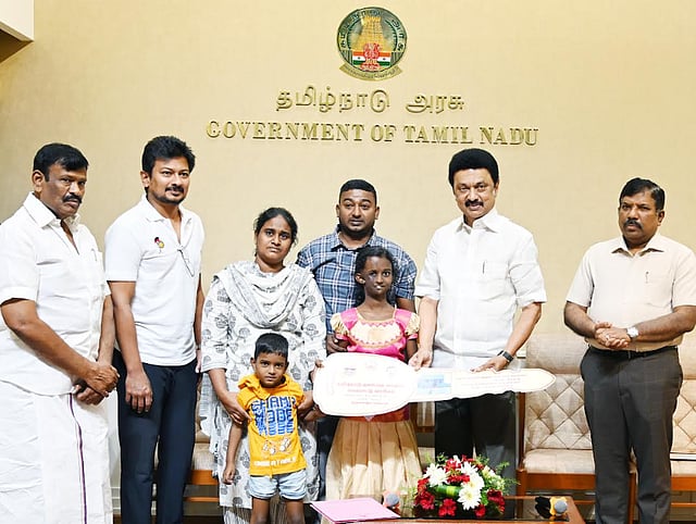 திருவள்ளூர் மாவட்டம், வில்லிவாக்கம் ஊராட்சி ஒன்றியத்திற்கு உட்பட்ட மோரை ஊராட்சி வீராபுரம் பகுதியைச் சார்ந்த சௌபாக்யா - ஸ்டீபன் தம்பதியினரின் மகளான செல்வி.தான்யா முகச்சிதைவு நோயினால் பாதிக்கப்பட்டு அவதியுற்ற நிலையில் முதல்வர் ஸ்டாலினுக்கு குறுஞ்செய்தி மூலம் தன்னிலை குறித்து தெரிவித்ததன் அடிப்படையில் முதல்வர், சிறுமி தான்யாவின் உடல் நிலையினை கருதி அறுவை சிகிச்சை செலவு முழுவதையும் ஏற்றதுடன் சிறுமி கேட்டுக் கொண்டதன் பேரில் அவர்களின் பெற்றோருக்கு இலவச வீட்டு மனையினை வழங்கி அரசின் மூலம் வீடு கட்டித்தர ஆணையிட்டார்.