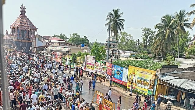 தெற்கு ரதவீதி- கோவை பிரதான சாலையில் தொடங்கிய அவிநாசியப்பர் தேரோட்டம், மேற்குரதவீதி வழியாக வந்து, வடக்கு ரதவீதி வளைவில் மதியம் நிறுத்தப்பட உள்ளது.
