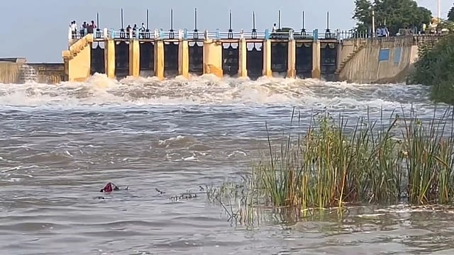 Flooding in the Ponnai River Flood warning issued for people living along the banks!