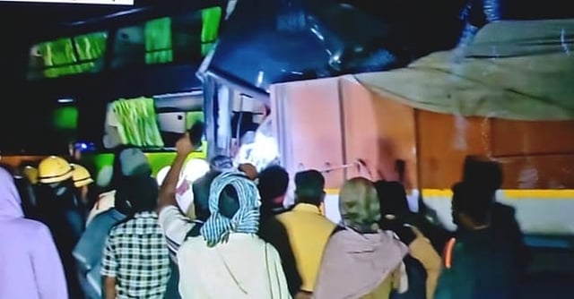 இந்த விபத்தில் ஆம்னி பேருந்துக்கும் சிமென்ட் டேங்கர் லாரிக்கும் இடையில் சிக்கிய பேருந்து ஓட்டுநர் ராஜீவ்காந்தியை, போலீசார் மற்றும் தீயணைப்பு வீரர்கள் ஒரு மணி நேரத்திற்கு மேலாக போராடி மீட்ட நிலையில் உயிரிழந்தார். இரு வாகனங்களுக்கு இடையில் சிக்கியதால், இரு கால்களும் துண்டான நிலையில் ஓட்டுநர் இருக்கையில் அமர்ந்தவாறு என்னை காப்பாற்றுங்கள் என ஓட்டுநர் ராஜீவ் காந்தி கதறியது அங்கிருந்தோரின் கண்களில் கண்ணீர் வரவழைத்தது.