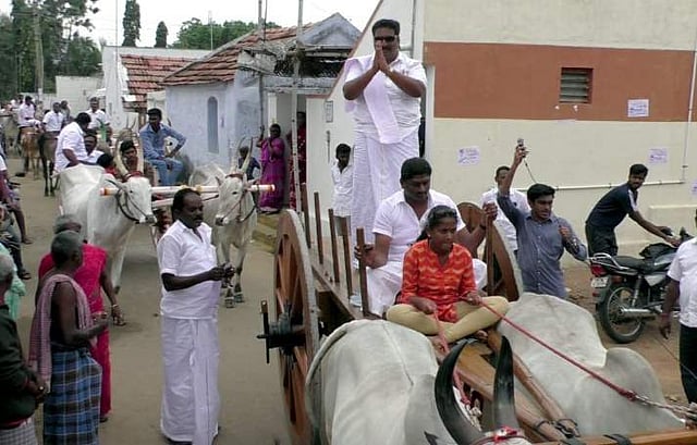 ஈரோடு: தூக்கநாயக்கன்பாளைம் (டி.என்.பாளையம்) ஊராட்சி ஒன்றியத்தை சேர்ந்த ஊராட்சித் தலைவர் வேட்பாளர் மாட்டு வண்டியில் சென்று வாக்குச்சேகரிப்பில் ஈடுபட்டு கிராம மக்களின் கவனத்தை ஈர்த்துள்ளார்.