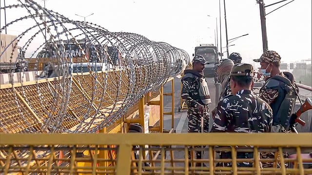 முதலாவதாக காஜியாபாத் எல்லைப்பகுதி மேம்பாலத்தில் போக்குவரத்து அனுமதிக்கப்பட்டாலும், அணுகுச்சாலையில் 5 அடி உயரம் உள்ள கான்கிரீட் தடுப்புகள், கண்ணீா் புகை குண்டு மற்றும் தண்ணீரை பீச்சி அடிக்கும் இயந்திரங்களுடன் சாலையில் மத்திய ரிசா்வ் படை போலீஸாா், விரைவு அதிரடிப் படையினா், தில்லி போலீஸாா் மற்றும் உத்தரப்பிரதேச மாநிலப் போலீஸாா் 24 மணி நேமும் தீவிரப் பாதுகாப்பில் ஈடுபட்டுள்ளனா்.