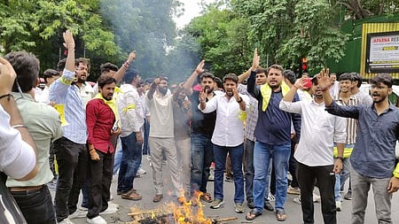 ஆம் ஆத்மி கட்சியின் மாணவா் பிரிவான மாற்று அரசியலுக்கான மாணவா் சங்கம் (ஏஎஸ்ஏபி), தில்லி பல்கலைக்கழகத்தின் வடக்கு வளாகத்தில் ஒரு போராட்டத்தை புதன்கிழமை நடத்தியது.