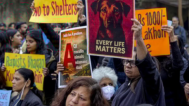 ஜனவரி 7- ஆம் தேதி இந்த விவகாரம் குறித்து உச்சநீதிமன்றத்தின் அடுத்த விசாரணைக்கு முன்னதாக, ’செய் அல்லது செத்து மடி’ என்ற பதாகையின் கீழ் கூடிய போராட்டக்காரா்கள், சமூக நாய்களை பெருமளவில் அகற்றுதல் மற்றும் சிறைப்பிடித்தல் உத்தரவுகளை உடனடியாக நிறுத்தக் கோரினா்.