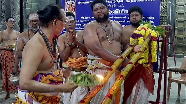 பஞ்சபூத ஸ்தலங்களில் ஒன்றான காஞ்சி ஏகாம்பரநாதர் திருக்கோயில் குடமுழுக்கு விழாவிற்கான முதல் கட்ட பந்தக்கால் நடும் பணி இன்று வெகு விமர்சையாக நடைபெற்றது.