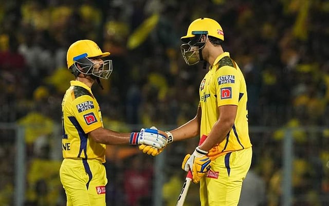 சென்னை அணியின் துவக்க ஆட்டக்காரர்களாக ருதுராஜ் - டெவன் கான்வே ஜோடி களமிறங்கியது. இருவரும் ஆரம்ப முதலே அதிரடி ஆட்டத்தை வெளிப்படுத்தினர். இருப்பினும், ருதுராஜ் 20 பந்துகளில் 35 ரன்கள் எடுத்து ஆட்டமிழந்தார். அடுத்து வந்த அஜிங்க்ய ரஹானேவும் அதிரடியாக ஆடினார்.