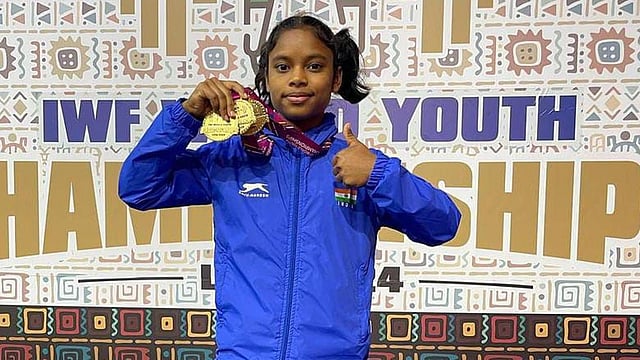 மகளிருக்கான 44 கிலோ எடைப் பிரிவில் களமாடிய அவா், ஸ்னாட்ச் பிரிவில் 66 கிலோ, கிளீன் & ஜொ்க் பிரிவில் 92 கிலோ என மொத்தமாக 158 கிலோ எடையைத் தூக்கி தங்கப் பதக்கம் வென்றாா்.