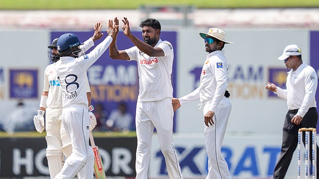 ஆட்டத்தின் மூன்றாம் நாளான இன்று (செப்டம்பர் 28) நியூசிலாந்து அணிக்கு பேரதிர்ச்சியாக அமைந்தது. ஆட்டம் தொடங்கிய சிறிது நேரத்திலேயே கேன் வில்லியம்சன் 7 ரன்களிலும், அஜாஸ் படேல் 8 ரன்களிலும் ஆட்டமிழந்தனர். அதன் பின், நியூசிலாந்து வீரர்கள் ஒருவர் பின் ஒருவராக சுழற்பந்துவீச்சாளர்களான பிரபாத் ஜெயசூர்யா மற்றும் நிஷான் பெய்ரிஸ் பந்துவீச்சில் விக்கெட்டுகளை பறிகொடுத்தனர்.
