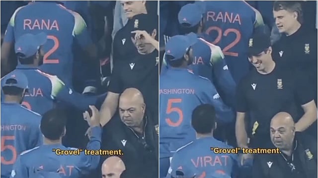 தென்னாப்பிரிக்க பயிற்சியாளரிடம் இந்திய அணியின் நட்சத்திர வீரர் விராட் கோலி கைகுலுக்க மறுத்து அவரை கடந்து சென்ற விடியோ இணையத்தில் வேகமாகப் பகிரப்பட்டு வருகிறது.