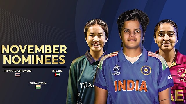 அதன் படி, ஐசிசியின் நவம்பர் மாதத்துக்கான சிறந்த வீராங்கனை விருதுக்கான போட்டியில் இந்திய அணியின் தொடக்க வீராங்கனையான ஷஃபாலி வர்மா இடம்பெற்றுள்ளார். அவருடன் தாய்லாந்து வீராங்கனை திபட்சா புத்தவாங் மற்றும் ஐக்கிய அரபு அமீரக வீராங்கனை ஈஷா ஓஷாவும் இடம்பெற்றுள்ளனர்.
