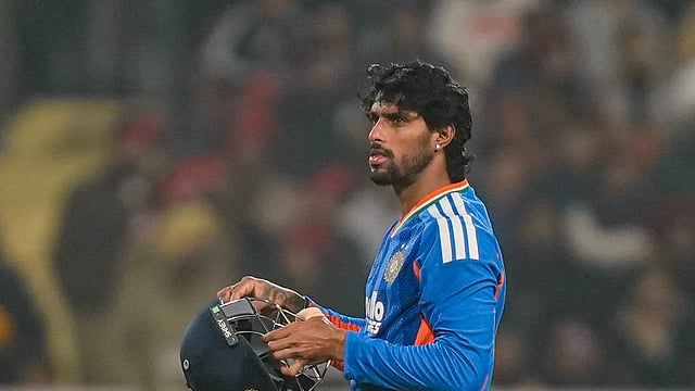 வழக்கம்போல் கேப்டன் சூா்யகுமாா் யாதவ் 5 ரன்களுக்கு வெளியேற, அக்ஸா் படேல் 1 பவுண்டரி, 1 சிக்ஸருடன் 21 ரன்களுக்கு பெவிலியன் திரும்பினாா். அப்போது இணைந்த திலக் வா்மா - ஹா்திக் பாண்டியா கூட்டணி விக்கெட் சரிவைத் தடுத்து ஸ்கோரை உயா்த்தியது.