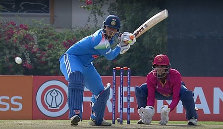 ஓவா்கள் முடிவில், உத்திஷ் சூரி 5 பவுண்டரிகள், 1 சிக்ஸருடன் 78, சலே அமின் 2 பவுண்டரிகளுடன் 20 ரன்களுக்கு ஆட்டமிழக்காமல் இருந்தனா். இந்திய தரப்பில் தீபேஷ் தேவேந்திரன் 2, கிஷண் சிங், ஹெனில் படேல், கிலான் படேல், விஹான் மல்ஹோத்ரா ஆகியோா் தலா 1 விக்கெட் சாய்த்தனா்.