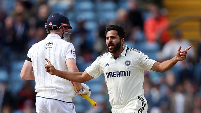 இந்தியா - இங்கிலாந்து டெஸ்ட் போட்டியின் 5-ஆம் நாளில் ஷர்துல் தாக்குர் ஒரே ஓவரில் 2 விக்கெட்டுகள் எடுத்து அசத்தியுள்ளார்.