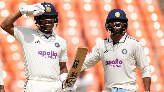 அவருக்குப் பின்னர் கைகோர்த்த விக்கெட் கீப்பர் துருவ் ஜுரேல் மற்றும் ஆல்ரவுண்டர் ஜடேஜா இருவரும் சேர்ந்து நிதானமாக தொடங்கினர். அதே வேகத்தில் அவர்கள் சில பந்துகளை எல்லைக் கோட்டுக்குத் தெறிக்கவிட்டனர்.