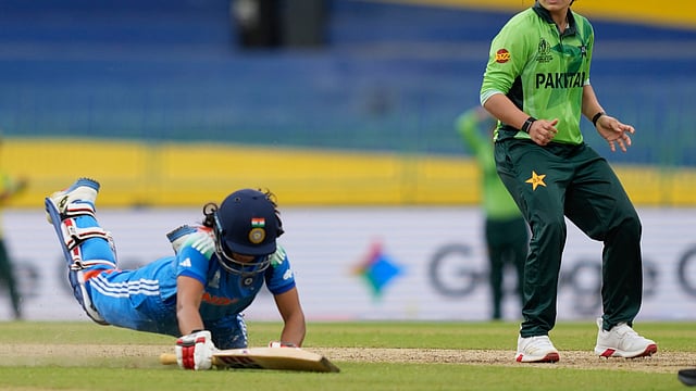 இந்தியா - பாகிஸ்தான் இடையிலான மகளிர் ஒருநாள் உலகக்கோப்பை தொடரில் லீக் சுற்று போட்டியில், இந்தியா நிதான ஆட்டத்தை வெளிப்படுத்தி வருகிறது.