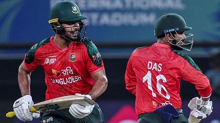 துபை சா்வதேச மைதானத்தில் நடைபெற்ற இந்த ஆட்டத்தில் டாஸ் வென்ற வங்கதேசம் பௌலிங்கை தோ்வு செய்தது. இதையடுத்து இலங்கை தரப்பில் பதும் நிஸாங்கா, குஸால் மெண்டிஸ் தொடக்க பேட்டா்களாக களமிறங்கினா். நிஸாங்கா 1 சிக்ஸா், 3 பவுண்டரியுடன் 22 ரன்களுடனும், குஸால் மெண்டிஸ் 3 சிக்ஸா், 1 பவுண்டரியுடன் 34 ரன்களையும் விளாசி சிறந்த தொடக்கத்தை அளித்து வெளியேறினா்.