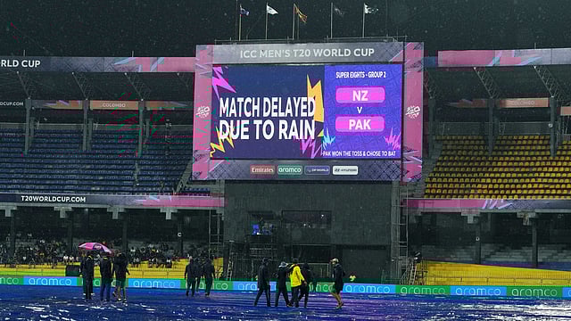 நியூசிலாந்து - பாகிஸ்தான் இடையேயான சூப்பர் 8 சுற்றின் முதல் போட்டி மழையால் தாமதமாகியுள்ளது.