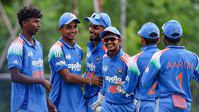 இந்தியா தரப்பில் ஆர்.எஸ்.அம்பிரிஷ் 4 விக்கெட்டுகளைக் கைப்பற்றி அசத்தினார். ஹெனில் படேல் 3 விக்கெட்டுகளையும், கிலான் படேல், முகமது எனான் மற்றும் கனிஷ்க் சௌகான் தலா ஒரு விக்கெட்டினையும் கைப்பற்றினர்.