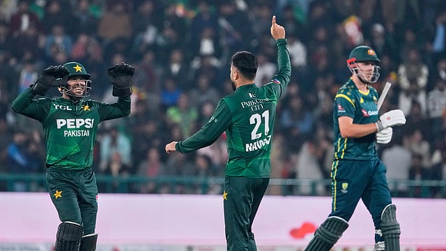 லாகூரில் இன்று(ஜன. 29) நடைபெற்ற பாகிஸ்தானுக்கு எதிரான முதலாவது டி20 ஆட்டத்தில், பாகிஸ்தான் முதலில் பேட்டிங் செய்து, 168 ரன்கள் திரட்டியது. இதையடுத்து, 169 ரன்கள் வெற்றி இலக்கை விரட்டிய ஆஸ்திரேலிய அணியில், தொடக்க வீரர் மேத்யூ ஷார்ட் 5 ரன்களுக்கு ஆட்டமிழந்தார். கேப்டன் டிராவிஸ் ஹெட் 23 ரன்களுக்கு ஆட்டமிழந்தார். அடுத்து களமிறங்கிய கேமரூன் கிரீன் 36 ரன்களுக்கு ஆட்டமிழக்க, அணியின் ஸ்கோர் வேகம் நிலைகுலையத் தொடங்கியது.