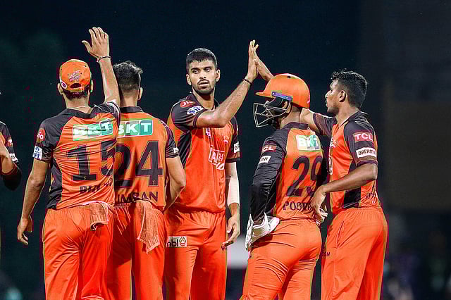 ஹைதராபாத் தரப்பில் வாஷிங்டன் சுந்தர், நடராஜன் மற்றும் ரொமாரியோ ஷெபெர்ட் ஆகியோர் தலா 2 விக்கெட்டுகளை வீழ்த்தினர்.