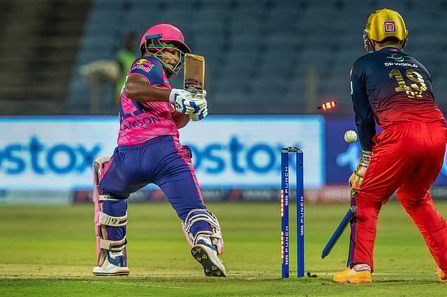 இதன்பிறகு, கேப்டன் சஞ்சு சாம்சன் சிக்ஸர்களாக பறக்கவிட்டு அதிரடி காட்டத் தொடங்கினார். ஆனால், அவரை 27 ரன்களுக்கு ஆட்டமிழக்கச் செய்தார் வனிந்து ஹசரங்கா. டேரில் மிட்செல் (16), ஷிம்ரோன் ஹெத்மயர் (3) சோபிக்கத் தவற ராஜஸ்தான் அணி கடுமையான நெருக்கடியில் இருந்தது.