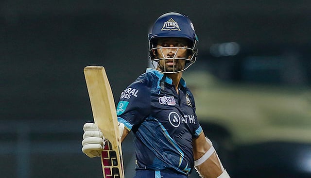 உம்ரான் மாலிக்குக்கு ஓய்வளிக்கப்பட்டதையடுத்து சஹா சற்று அதிரடி காட்டி ஹைதராபாத்துக்கு நெருக்கடியளித்தார். பின்னர் 14-வது ஓவரில் மாலிக் மீண்டும் கொண்டுவரப்பட்டார். சிறப்பாக விளையாடி வந்த சஹாவை 153 கி.மீ. வேகத்தில் யார்க்கர் வீசி போல்டாக்கினார் மாலிக். சஹா 38 பந்துகளில் 68 ரன்கள் எடுத்தார்.