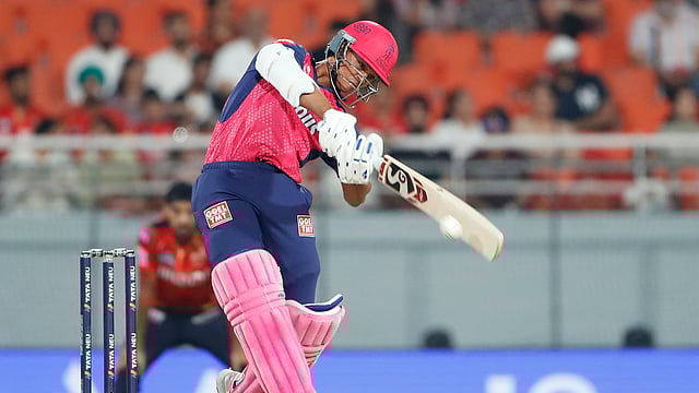 தொடக்கம் முதலே அதிரடியில் அசத்திய ஜெய்ஸ்வால் அரைசதம் கடந்து அசத்தினார். அவர் 45 பந்துகளில் 67 ரன்கள் குவித்து ஆட்டமிழந்தார். அதில் 3 பவுண்டரிகள் மற்றும் 5 சிக்ஸர்கள் அடங்கும். ரியான் பராக் 25 பந்துகளில் 43 ரன்களும் (3 பவுண்டரிகள், 3 சிக்ஸர்கள்), ஷிம்ரன் ஹெட்மேயர் 12 பந்துகளில் 20 ரன்களும் (2 பவுண்டரிகள், ஒரு சிக்ஸர்) எடுத்தனர். துருவ் ஜுரெல் 5 பந்துகளில் 13 ரன்கள் எடுத்தார். அதில் ஒரு பவுண்டரி மற்றும் ஒரு சிக்ஸர் அடங்கும்.