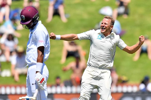 59 ரன்கள் வரை முதல் விக்கெட் விழவில்லை. ஆனால் அடுத்த 75 ரன்களுக்குள் அனைத்து விக்கெட்டுகளையும் மே.இ. இழந்துவிட்டது. மே.இ. அணி தனது முதல் இன்னிங்ஸில் 45.4 ஓவர்களில் 134 ரன்களுக்கு அனைத்து விக்கெட்டுகளையும் இழந்துள்ளது. இடது கை வேகப்பந்துவீச்சாளரான நைல் வேக்னர் பிரமாதமாகப் பந்துவீசி 7 விக்கெட்டுகளைக் கைப்பற்றினார். போல்ட் 2 விக்கெட்டுகள் எடுத்துள்ளார். மே.இ. அணியில் கிரன் பவல் அதிகப்பட்சமாக 42 ரன்கள் எடுத்தார்.