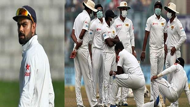 இந்நிலையில், இலங்கை வீரர்கள் மூச்சுத்திணறல் காரணமாக அவதிப்பட்டு வருகின்றனர். இதனால் ஆட்டம் சிறிது நேரம் பாதிக்கப்பட்டது. இலங்கை வீரர்கள் அனைவரும் முகமுடி அணிந்து விளையாடினர்.