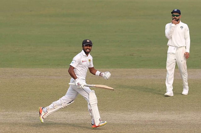 தில்லியில் இரு அணிகளுக்கு இடையே சனிக்கிழமை தொடங்கிய ஆட்டத்தில் டாஸ் வென்ற இந்தியா முதலில் பேட் செய்தது. 127.5 ஓவர்களில் 7 விக்கெட் இழப்புக்கு 536 ரன்கள் எடுத்திருந்தபோது டிக்ளேர் செய்தது இந்தியா. இதையடுத்து தனது முதல் இன்னிங்ஸைத் தொடங்கிய இலங்கை 3-ஆம் நாள் ஆட்டம் முடிவில் இலங்கை 130 ஓவர்களில் 9 விக்கெட் இழப்புக்கு 356 ரன்கள் எடுத்தது. சண்டிமல் 147, லக்ஷன் சன்டகன் ரன்கள் இன்றி களத்தில் இருந்தார்கள்.