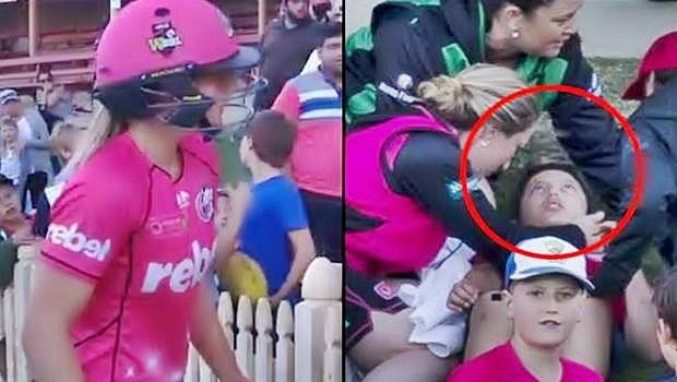 இதில், ஆஸ்திரேலிய மகளிர் அணியின் நட்சத்திர வீராங்கனை எல்லிஸ் பெர்ரி, சிட்னி சிக்ஸர்ஸ் அணியின் கேப்டனாக உள்ளார். அப்போது அவர் சிக்ஸருக்கு விளாசிய பந்து பார்வையாளர்களிடத்தில் இருந்த சிறுவனின் தலையில் பலமாகத் தாக்கியது. இதனால் அச்சிறுவனம் மைதானத்திலேயே மயங்கி விழுந்தான்.
